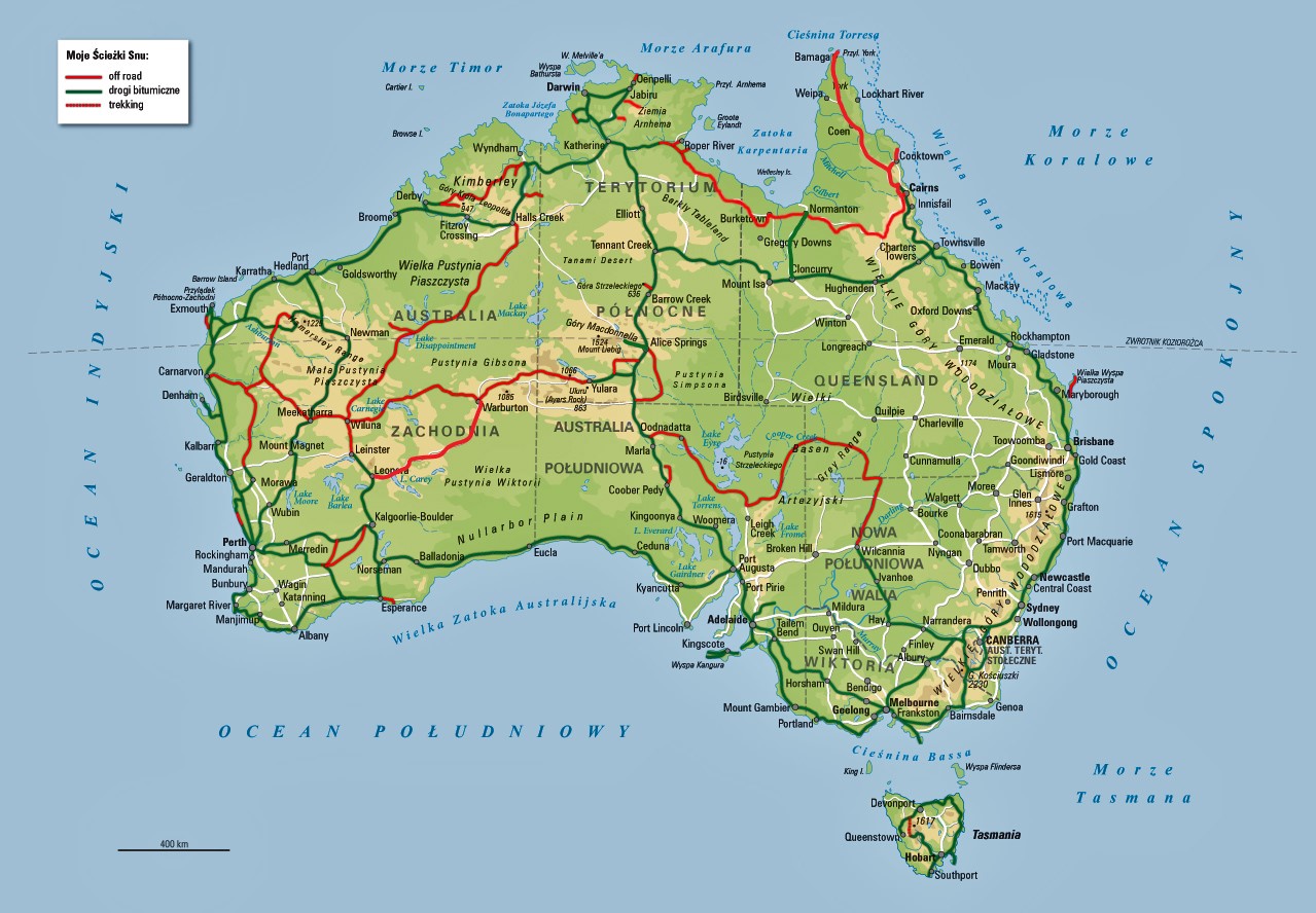 Outback – dla nas wciąż trudne słowo, w Australii oczywiste i niebudzące wątpliwości, że chodzi o krainę za miastem, izolowaną od cywilizacyjnego zgiełku, najczęściej w pustynnym centrum kontynentu. W sensie naszych wypraw – podobnie, outback to ten fragment kraju, który pozostaje dostępny drogami szutrowymi, szlakami pustynnymi, czyli dla samochodów z napędem na cztery koła. Niekoniecznie daleko od oceanu! Trzeba pamiętać, że Australia jest 25 razy większa od Polski i mieszka w niej zaledwie 20 mln ludzi. Najgęściej w pasie południowo-wschodniego wybrzeża. Olbrzymie obszary kraju pozostają poza strefą bezpośredniej działalności człowieka, czyli niemal zupełnie dzikie. I pierwotnie piękne.